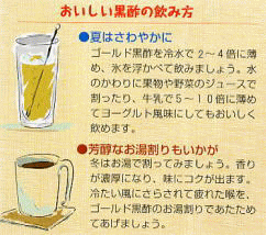 食前にゴールド黒酢を口に含み味わって下さい。爽やかな酸味が唾液や胃液の分泌を促し、