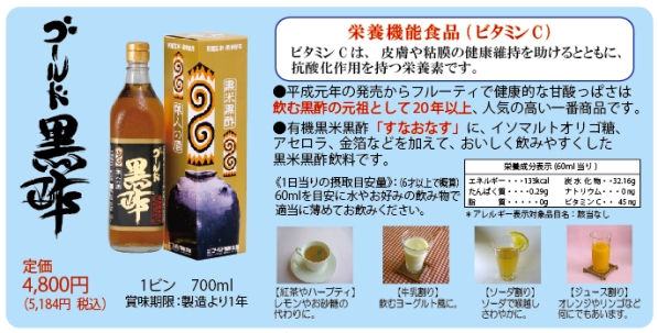 | 美味しいゴールド黒酢が誕生して26年になりました。いつの間にか多くの黒酢商品が登場 |