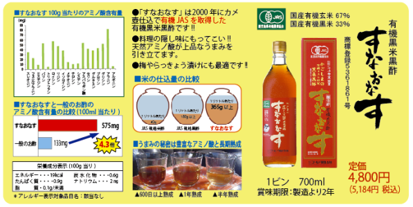 | しましたが、数ある黒酢の中で原料を安全な有機JAS玄米と黒米に限定して、薩摩の伝統 |