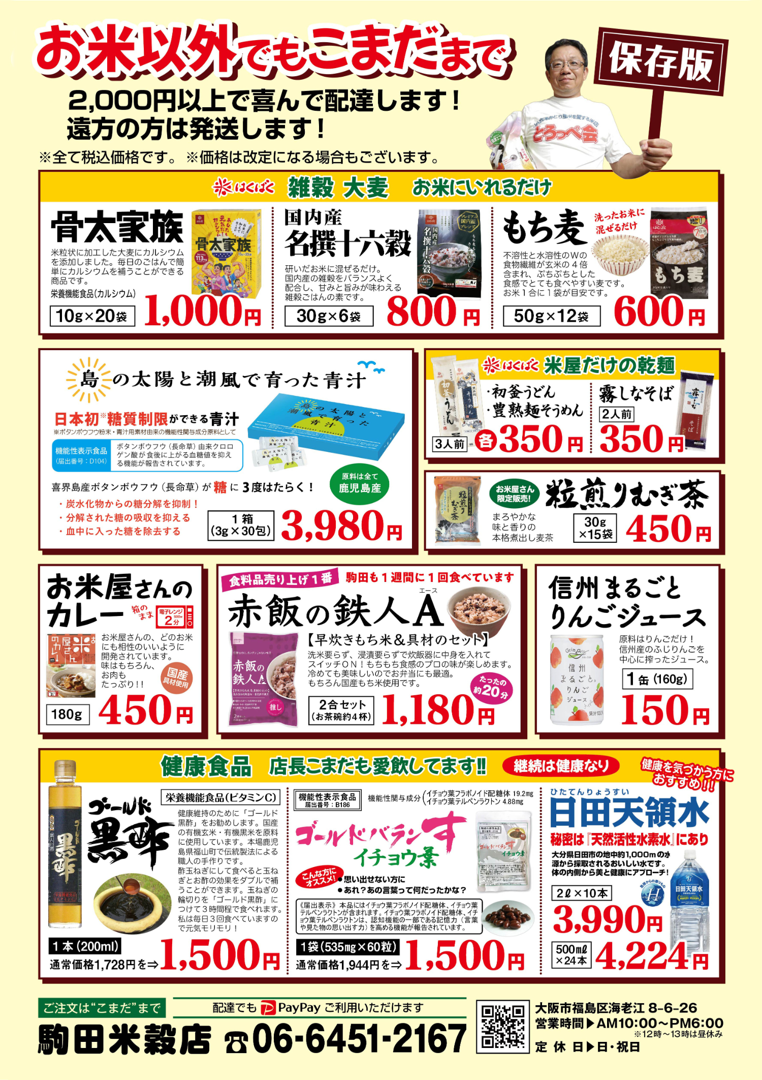 2kg×2袋 お持ち帰り価格の2,600円×2袋 送料なんと500円 合計5,700円