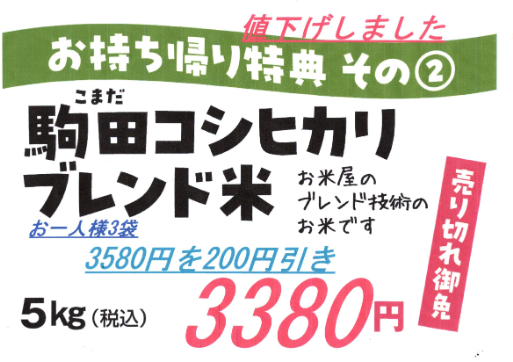 お持ち帰りの特典ですがネット見たお客様に限定100袋販売します。 但し事前振込と送料10kgまでは1000円 15kg1500円プラスです。 佐川急便でお送りします 日にち指定と時間指定できます。 振込されましたらメール下さい。確認次第お送り致します。
